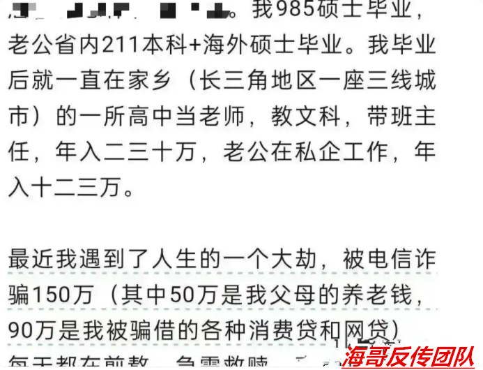 最近看到一个新闻,心里像被石头砸了一下:上海一位985名校毕业的高中老师,被骗了150万!更让人震惊的是,骗她的不是啥“低级骗局”,而是披着“金融创新”“慈善公益”外衣的传销诈骗!这位老师教书育人十几年,智商肯定不低,咋就栽了这么大跟头?这事儿背后,藏着传销诈骗组织最新的“升级套路”,简直比电影里的反派还会伪装!