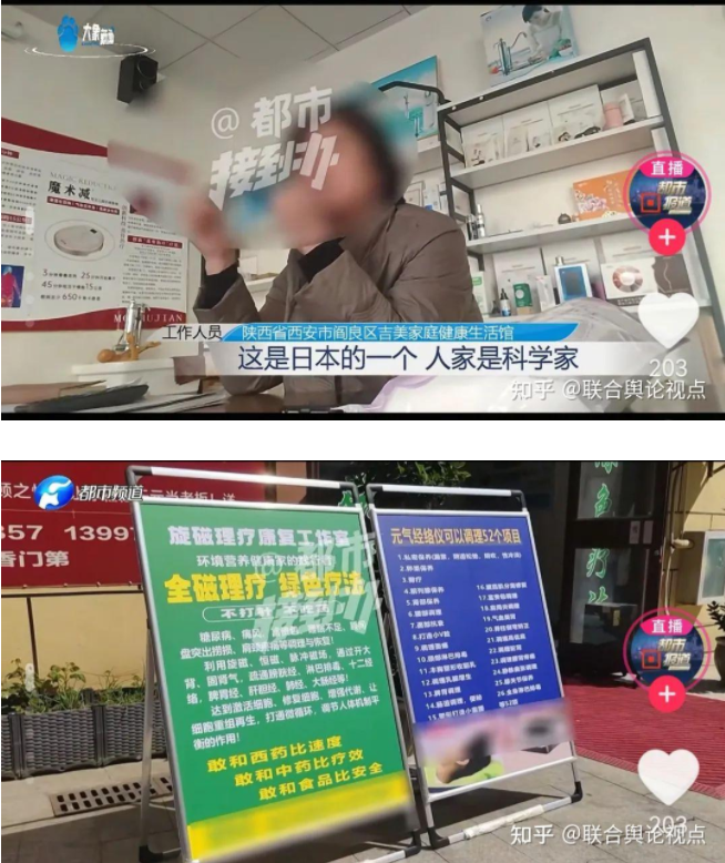 据河南广播电视台报道,陕西陈女士投诉称,61岁的婆婆因病去世后,她整理遗物时发现婆婆生前竟花10多万买各种“神器”,其中有4000元的水龙头、15000元的床垫、300元的眼罩、500元的内裤……这些产品都指向一家叫“吉美”的公司,老人生前甚至因为深信这些产品对外宣传的特殊功效,放弃了吃药。记者经过暗访发现,事情远不止陈女士反映得这么简单。养生馆里宣传小分子水泡脚能治糖尿病,“吉美”工作人员自曝靠拉人头日入1万5,“神水”和“神器”缔造了一个个离谱的“奇迹”,一群人打着养生和保健的旗号,正在掏空老年人的养老钱。