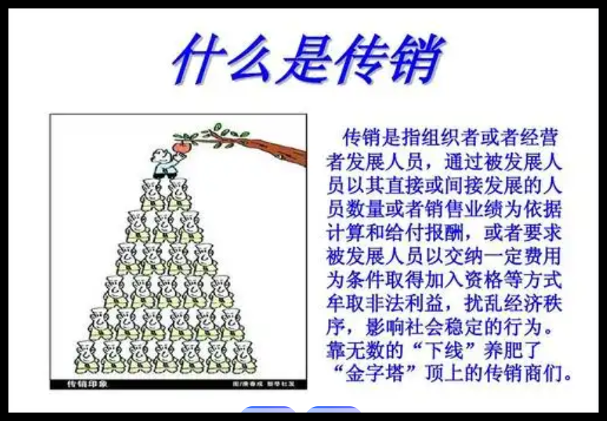 传销是一种通过人传人的方式达至销售目的的非法活动,其所依靠的是参与者的社会资源和社交联系,层层分享利润,是一种经济犯罪。其本质在于通过发展下线实现财务的非法转移与聚集,并未创造社会价值,却严重扰乱社会经济秩序、引发治安刑事案件。有些甚至造成家破人亡的悲剧。
