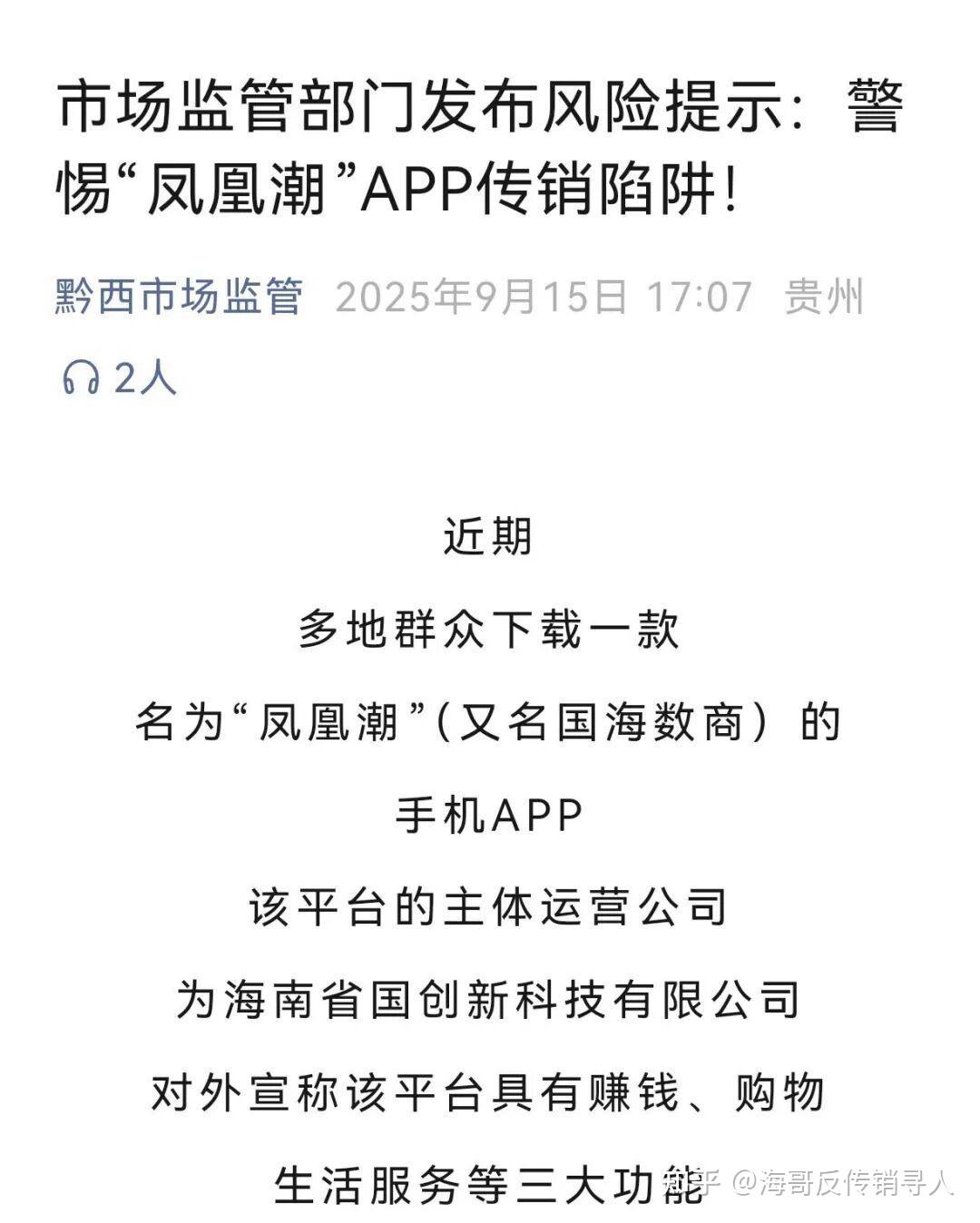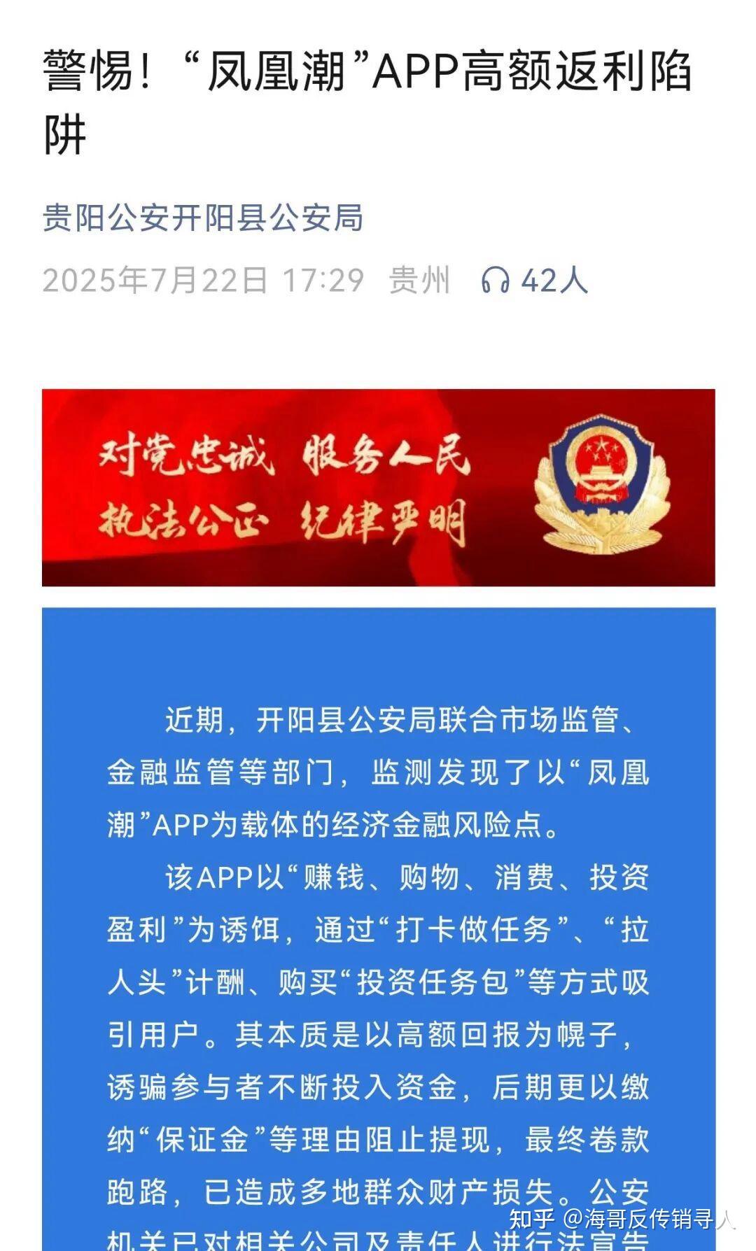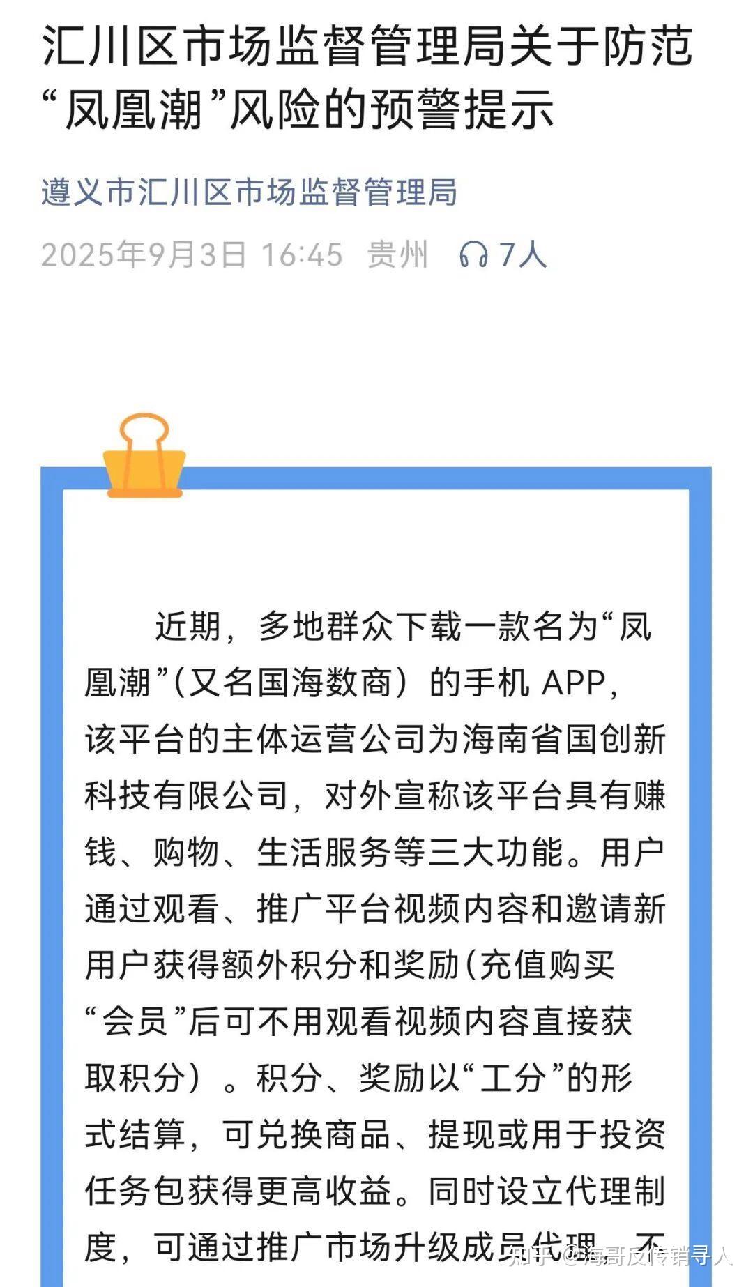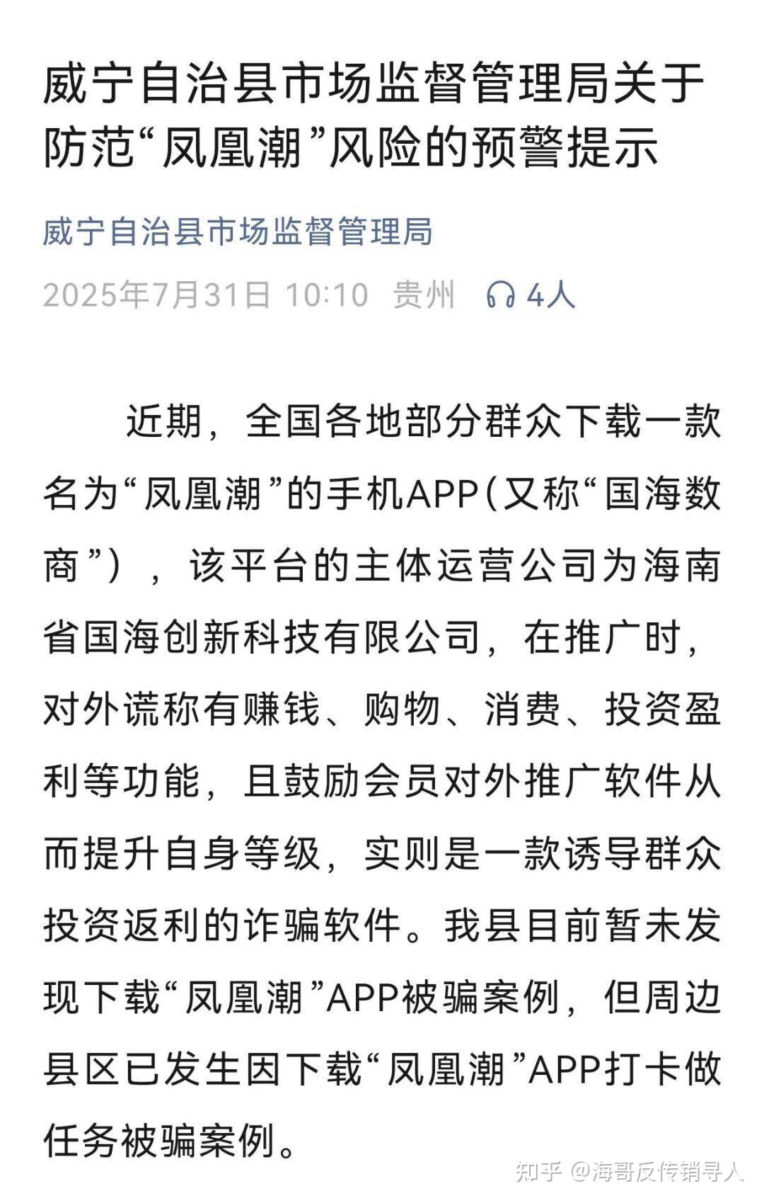此外今年,“凤凰潮”APP被贵州多地通报,发布“涉嫌传销”的风险提示。近期,重庆“万盛发布”也发布了关于防范“凤凰潮”风险的预警提示。