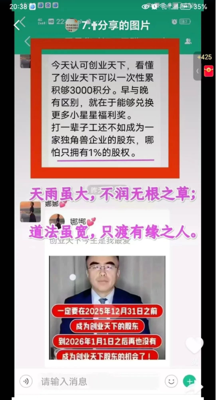在“创业天下”的投资模式中,充满了各种陷阱和风险。从其运营结构来看,呈现出典型的庞氏骗局特征,用户需要不断发展下线来获取收益,新会员投入的资金被用于支付老会员的返利,整个体系没有实际的实体盈利业务作为支撑。许多投资者被“终生收益”“消费返利”等高收益承诺所迷惑,盲目投入大量资金。然而,一旦资金链断裂,投资者将血本无归。例如,已有案例显示,一些老人为了投资“创业天下”与子女决裂,甚至抵押房产,最终却面临着投资无法收回的困境。而且,由于平台存在虚假包装,如号称“5G三网合一”却技术描述模糊,以层级返利为主;宣称的“德恒律所合作”等背书均未提供实质证明,这都使得投资者在投资时难以获取真实有效的信息,无法准确判断投资风险,投资者的权益根本无法得到切实保障。