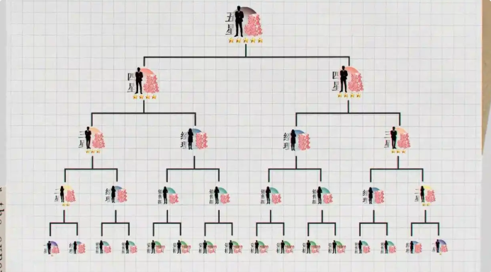 更可怕的是,一旦参与游戏,就仿佛踏入了一台永不停歇的发动机。哪怕只是稍微减速,都可能意味着前期投入的所有成本付诸东流。对于这点,圈圈深有体会,“只有一个劲不停地往上走才能有钱。就比如我是3星,下边又拱上来个3星,我得想办法赶紧上4星。我上了4星,下边又拱上来个4星,那我就一分钱没有。下边的人,谁拱我谁有钱。”