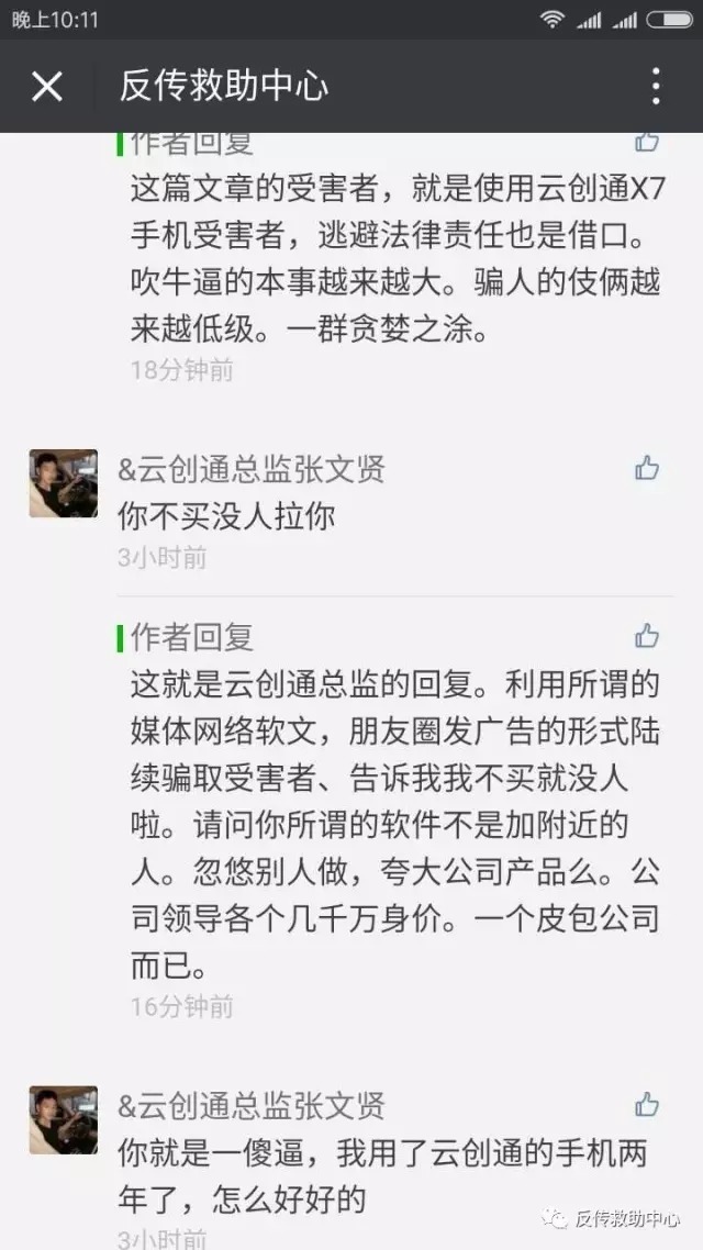 云创通的总监 张文贤威胁我们的作者,作为一个所谓的云创通公司,网络一搜云创通传销遍地都是月入十万不是梦。想想你的骗多少人?