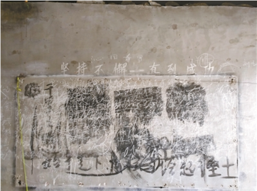 大院里的砖房内仍留有传销组织“上课”时的痕迹,在一面黑板上字迹尚未擦净,“必胜”、“财富”这些词汇被重重地描摹出来。