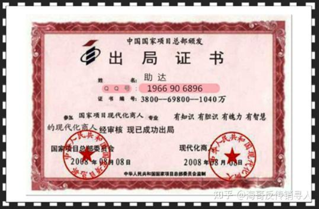 如果真的做到老总,且成功出局,这个出局证是不是真的有呢,相信很多人是明白的,这个1040阳光工程本身就是传销违法行为传销骗局,怎么可能会有这个所谓的出局证呢,从事过这个1040行业的人也许会明白,从最初的开心门(第一次揭谎)到晋升老总后的升总宴(第二次揭谎)这个过程很多人仅仅是听说而已,国家项目出局证的骗局已经一目了然了,哪一个操盘手还敢制造一个所谓的出局证出来呢。