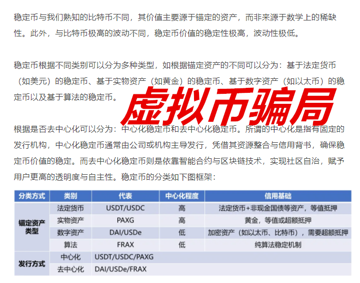 在网上能看到的很多关于稳定币的文章,这些文章大部分是有些人先把水搅浑,好从中牟利,关于稳定币,实际上它不过是一个传销加庞氏骗局的结合体,好听点就是资金盘,实则是诈骗。
