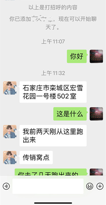 一位网友应网恋对象的邀请奔现到河北石家庄栾城区,发现这个网恋女友是传销团伙的一员。