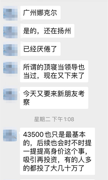 扬州传销:7天左右考察行业,五堂课,然后2900办一张永续而无形的营业执照,后续又通过提高身价,提前升主任拿差额,育成奖这些理由,引起好奇心投资,15套产品43500,也是传销叭?