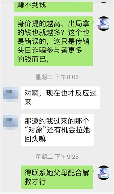 一位在江苏扬州的朋友说,自己在传销里面待了快两年时间了,也看清了传销的的本质,想要离开传销组织,但是对于当初拉自己进传销的女孩念念不忘,想要把这个女孩也带出来。可惜的是,进入传销的人,每一个人醒悟的时间都不同,自己不醒悟的情况下,就很难离开这个传销组织,尤其是女性朋友。