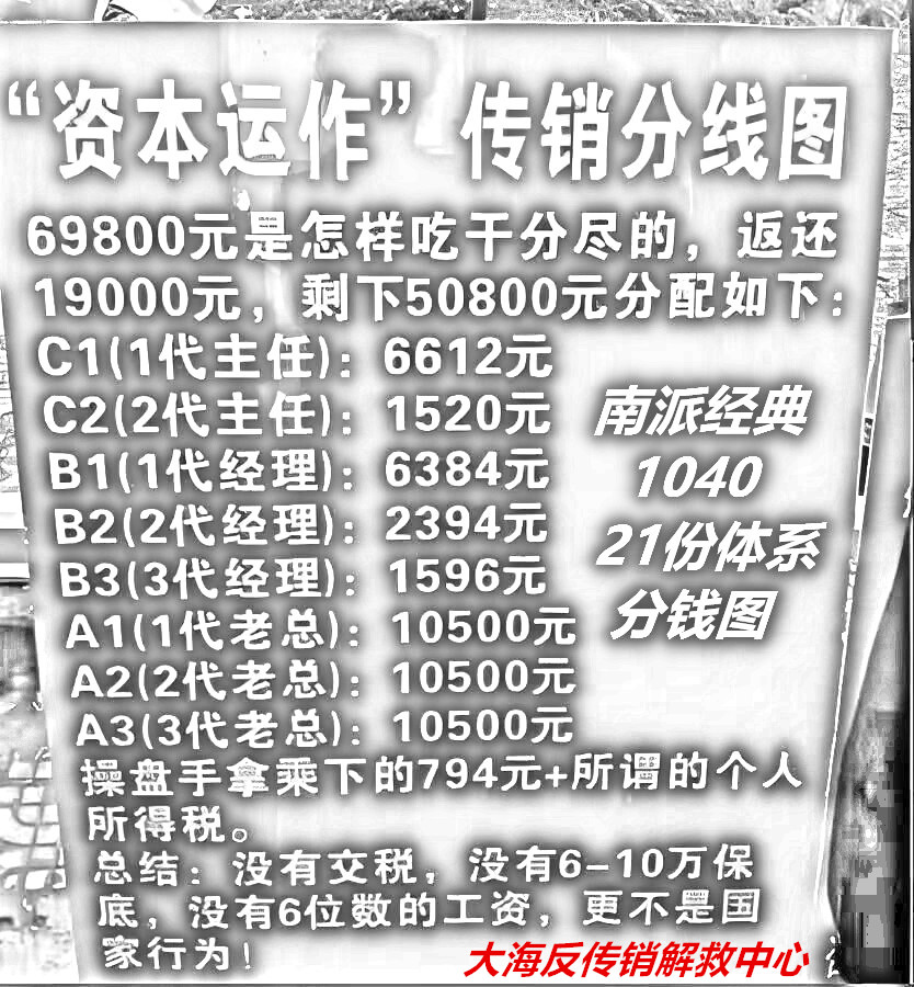 1040传销,又称“阳光工程”“连锁经营”,属于“纯资本运作”形式的南派传销,起源于广西。